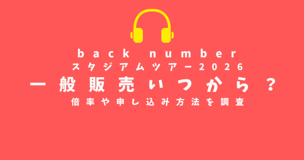 2026年に開催される「back numberスタジアムツアー」は、バンド史上最大規模となる超注目ライブです。 でも気になるのはやっぱり、「一般販売はいつから?」「チケットの倍率や申込方法は?」「取れなかったらどうするの?」といったチケットに関する悩み...