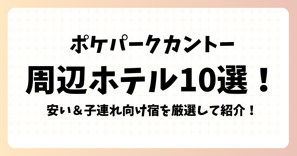 この記事では、ポケパークカントーの周辺ホテル10選を、安い・子連れ向け・アクセスの良さという視点から調査しまとめています。